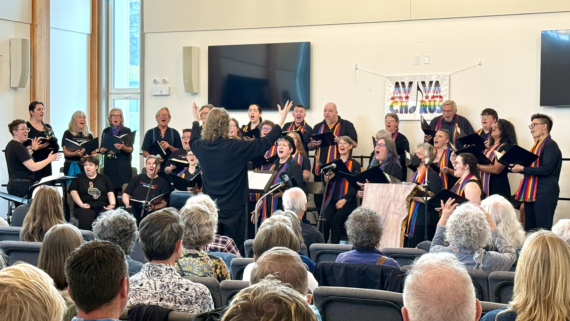 AVIVA Chorus is Vancouver Island’s longest-running 2SLGBTQ+ choir, celebrating our 20th anniversary in the 2025-26 season. We are a community of people from different backgrounds and experiences who come together to share our joy and passion for singing. We believe in being inclusive and respectful of all people. We are a non-auditioned choir and welcome diverse abilities. We choose music that reflects the diversity of various cultures and spiritual practices as well as different sexual orientations and gender identities.