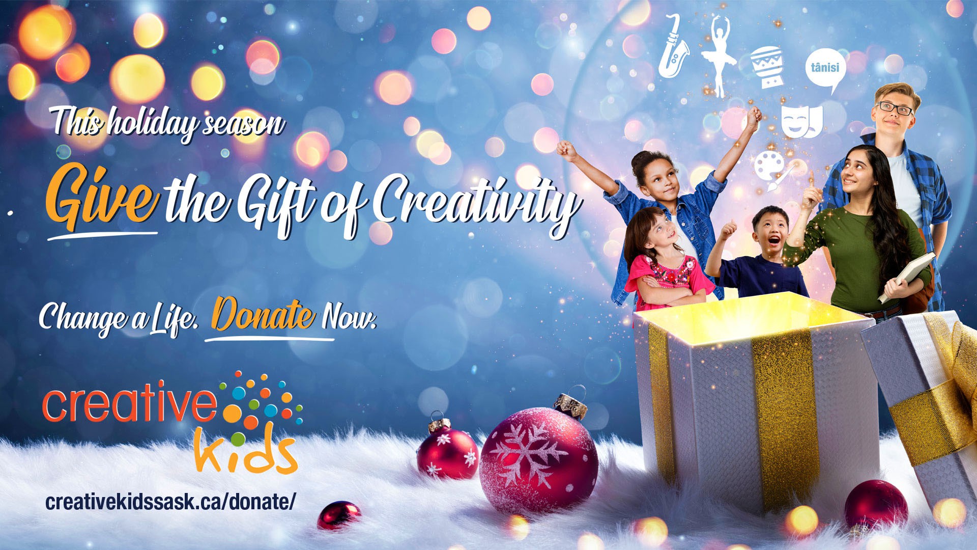 Creative Kids connects children and youth to unique, life-changing artistic and cultural experiences. We provide financial support to Saskatchewan families so all kids have an opportunity to participate in creative activities like theatre, art, dance, heritage, languages, and music.