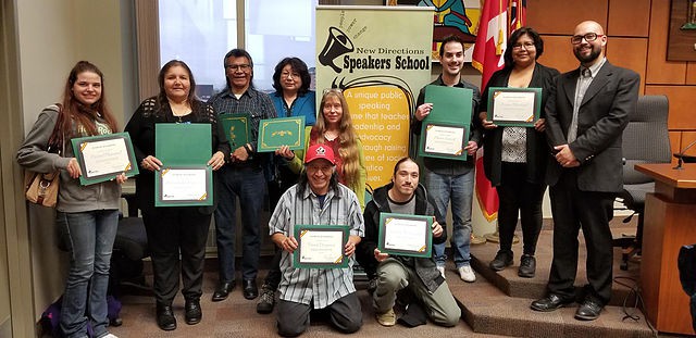 Created in 2008, New Directions Speakers School is a unique public speaking program which teaches public speaking, leadership and advocacy skills through raising awareness of social justice issues. The program is guided by the philosophy of addressing, overcoming and removing of barriers to participation and promotes an atmosphere of peer support and mutual aid.