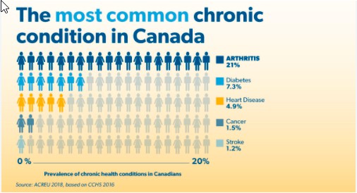 Arthritis is Canada’s most common chronic condition, affecting six million Canadians. There are more than 100 types of arthritis, with a range of symptoms including pain, joint inflammation and stiffness, and fatigue. There is no cure.