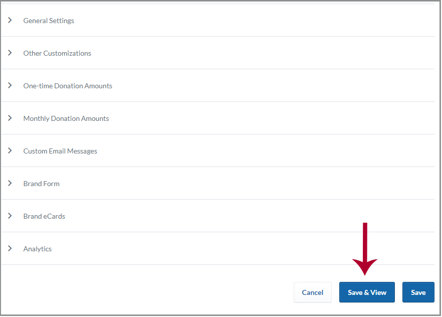 5. Fill out any information you wish to add, such as your fundraising goal, donation amounts, and custom email messages, and branding in the form’s additional settings.