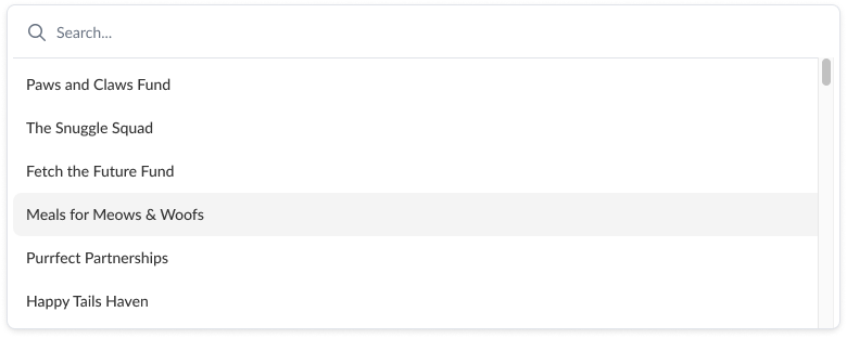 Searching for funds enhances the giving experience. It gives donors more control over where their money goes and simplifies finding exactly which fund they wish to support. Improved searchability also enables donors to effortlessly browse through many funds without friction or endless scrolling.