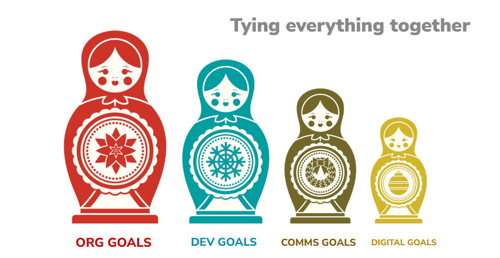 Before building your comms plan, you need to define your strategic priorities as an organization. Your development plan, communications goals and digital goals, all flow directly from your organizational objectives. So, before you begin with your communications planning, you must have these other pieces.