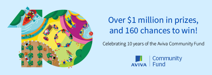 The Aviva Community Fund, Canada’s longest running online funding competition, is celebrating ten years of community impact by donating over $1 million to fund charitable initiatives across the country. And this year, Aviva is making it easier than ever for organizations to win with 160 prizes to give away!