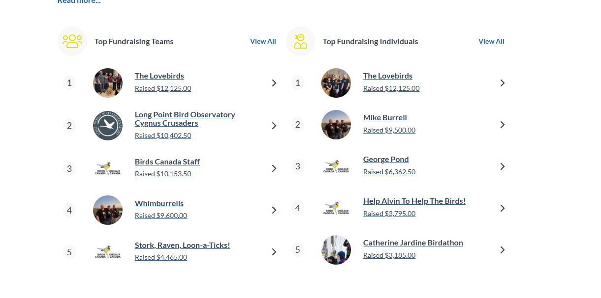 View Birds Canada’s fundraising page to see all three P2P fundraising options.