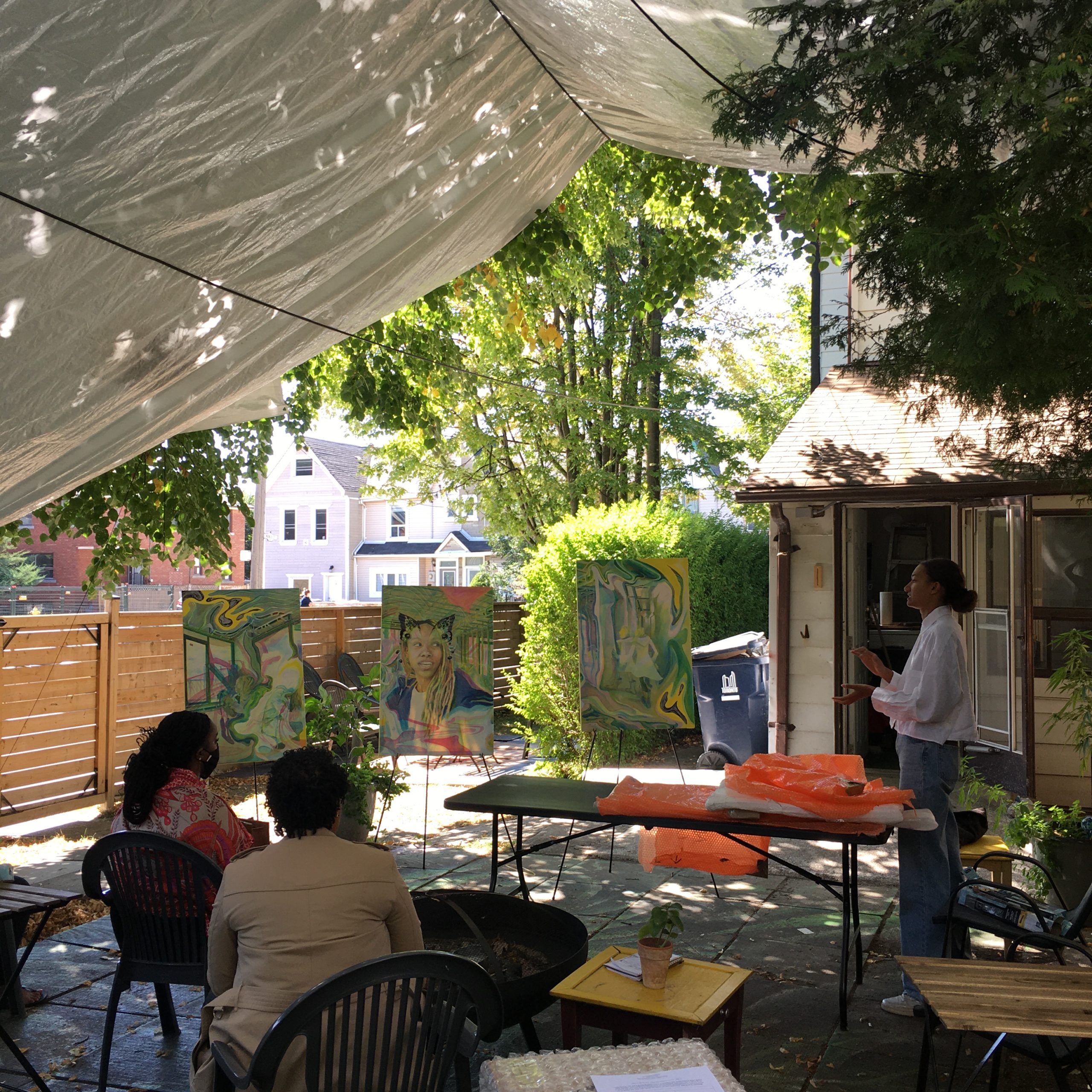 One of the biggest obstacles that BAND has had to overcome was finding space. Like many other Black organizations, BAND encountered issues with sustainable funding and dealing with landlords who weren’t comfortable with Black artists in their space. It took years to get where we are, but now BAND has a permanent home in an old Victorian house in Parkdale, at 19 Brock Avenue. The layout of this house lends itself kindly to many different uses. Whether it’s hosting a solo exhibition in the main gallery space, offering the smaller vignettes of the upstairs rooms to experiment within, or inviting the community into the backyard for a garden concert, BAND strives to make this space an open resource and gathering place for the community.