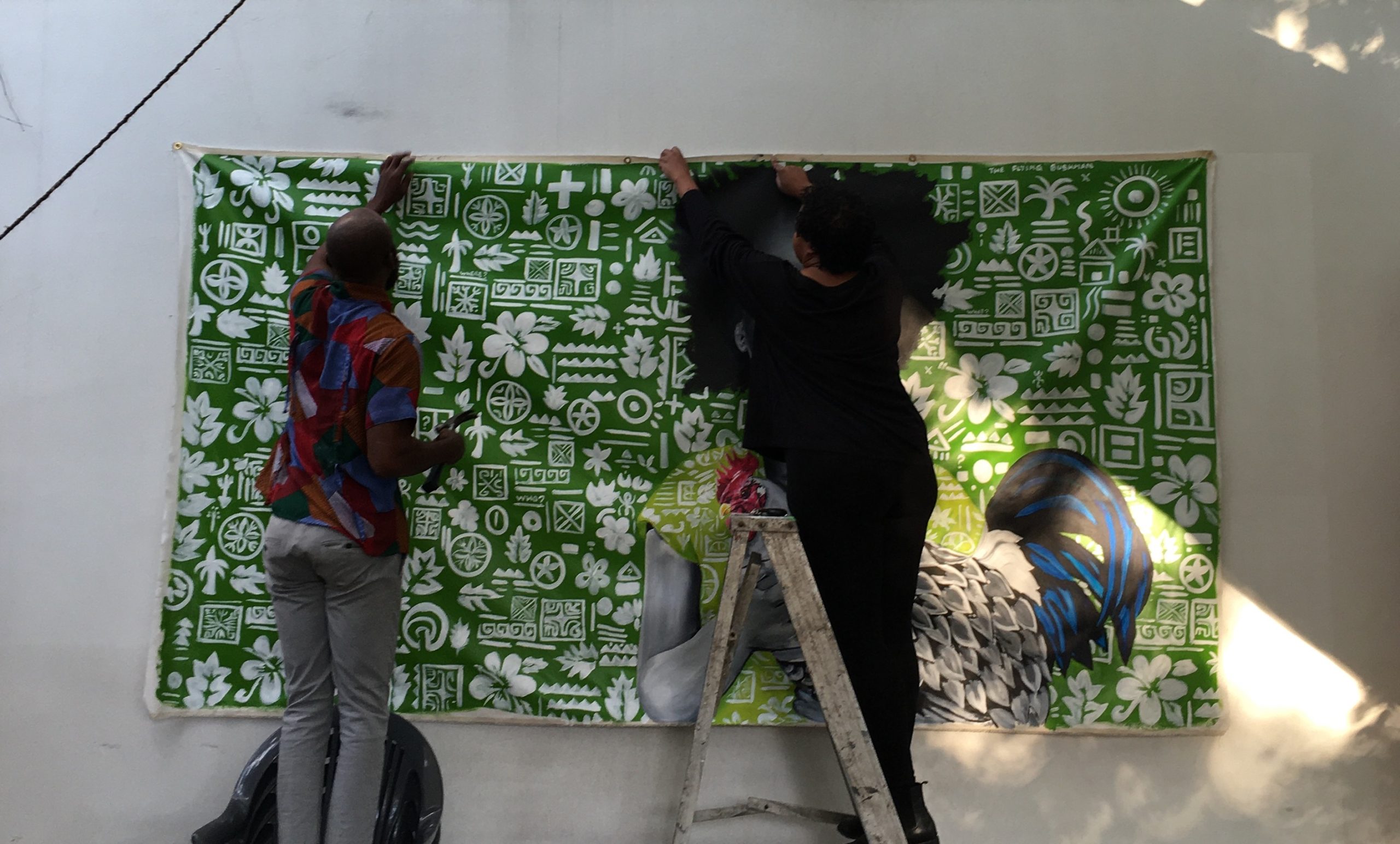 In response to our various community’s needs, BAND has created an adaptable Artist in Residence program that we look forward to expanding and growing. Our house may be small, but we have hosted artists like Charles Okah at BAND, taking advantage of the space we have (as pictured below) to create great new work.