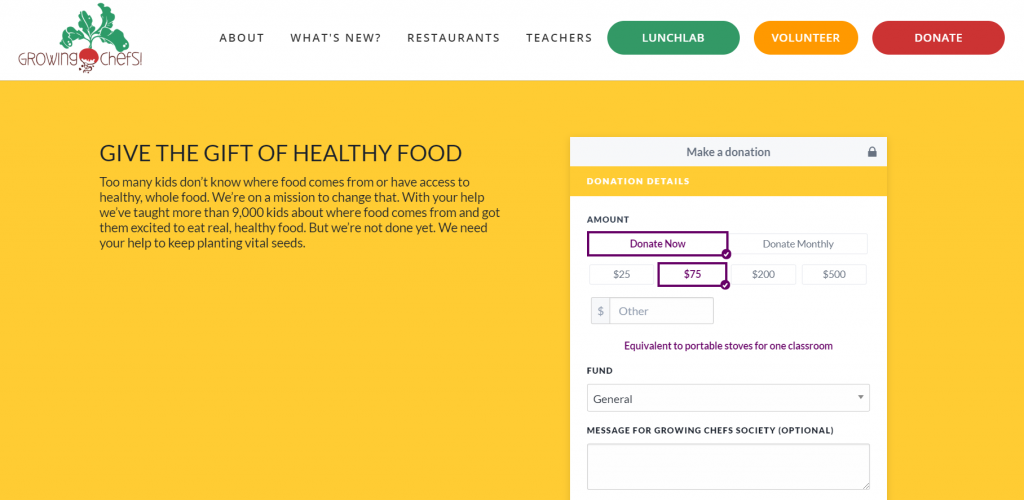 Vous pouvez montrer des produits et/ou des services qui correspondent symboliquement à chaque montant de don. Créez un formulaire de don spécial pour chacun de ces cadeaux de bienfaisance. Avec le temps, vos formulaires vous aideront à découvrir les cadeaux les plus populaires auprès de vos donateurs, et vous pourrez faire des ajustements pour vos campagnes futures.