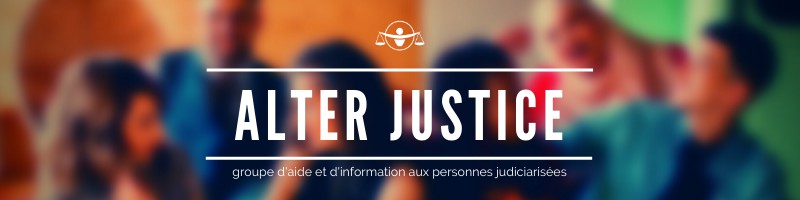 Alter Justice est un organisme à but non lucratif qui offre divers programmes d’intervention, d’information et de soutien à l’intention des personnes touchées par la judiciarisation et la détention dans un établissement correctionnel du Québec (sentence de deux ans moins un jour). L’organisme intervient principalement auprès des personnes judiciarisées et leurs proches afin de leur offrir de l’information vulgarisée sur le fonctionnement du système correctionnel québécois, sur les droits et obligations en milieu carcéral, le casier judiciaire et la suspension du casier judiciaire (demande de pardon).